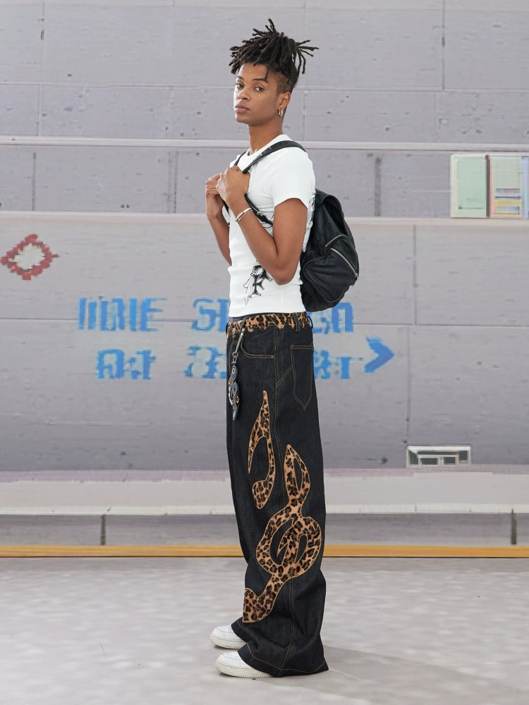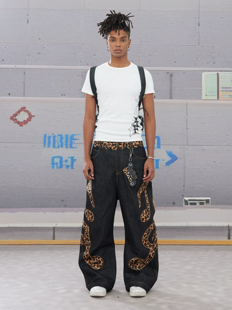 DND4DES Cow Leopard Print Baggy Scimitar Baggy Jeans