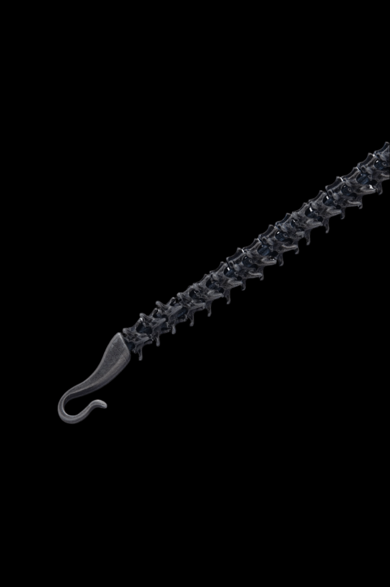 Style Vibe: Grunge-meets-industrial with a bold spine-like design