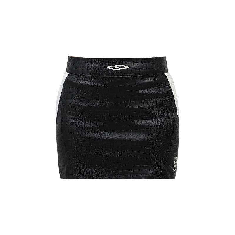 BLACK8MOB Crocodile Pattern Leather Skirt