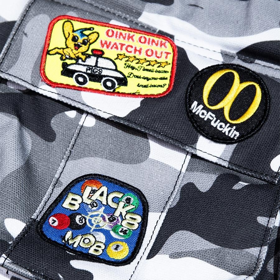 - Style Details: Striking camouflage print enhanced with unique badge accents for a modern, edgy vibe.