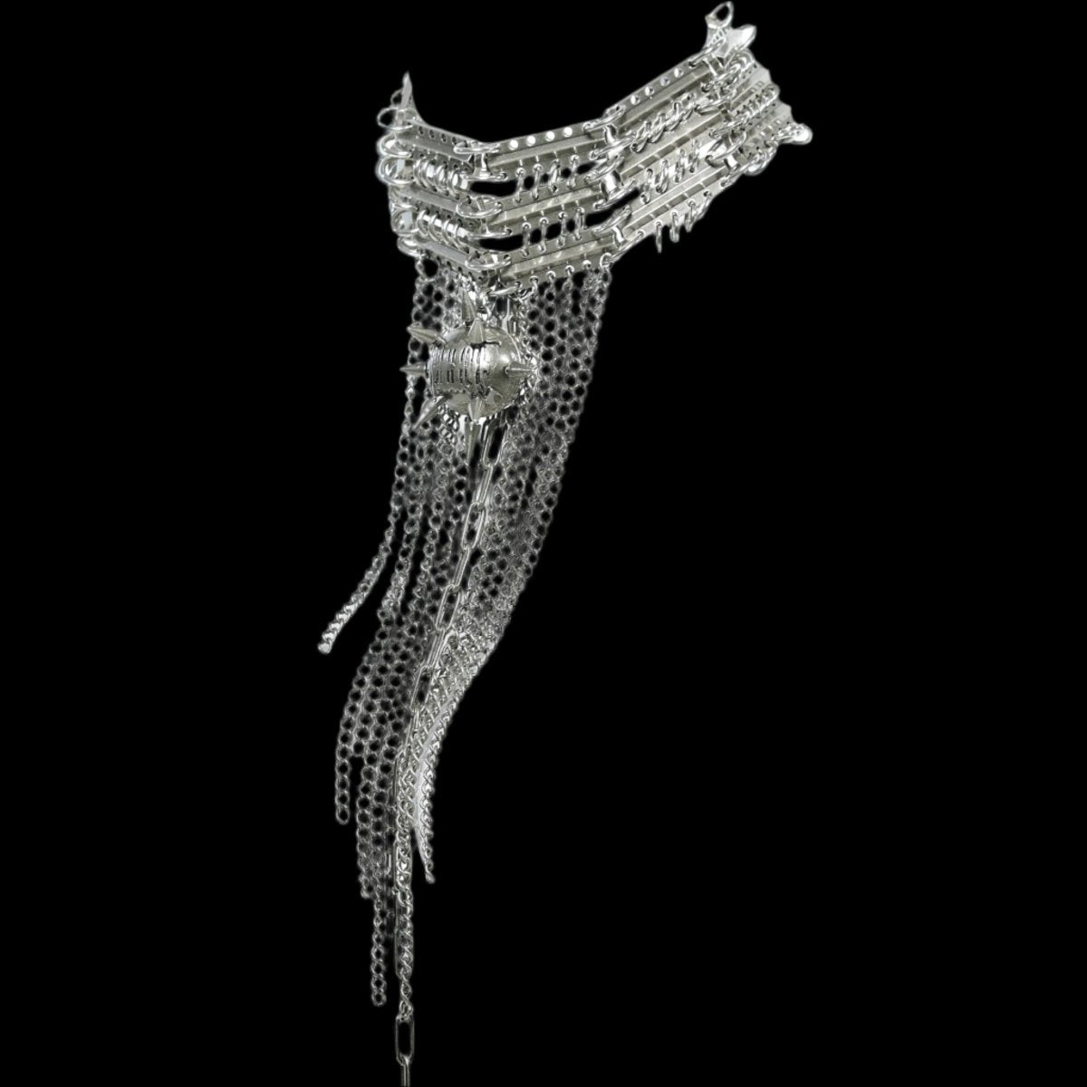 Royal feel, rebel look. The Chainfall Sovereign Collar brings a bold chain-layered edge to your outfit—made to stand out without trying too hard.