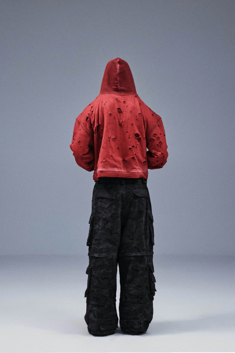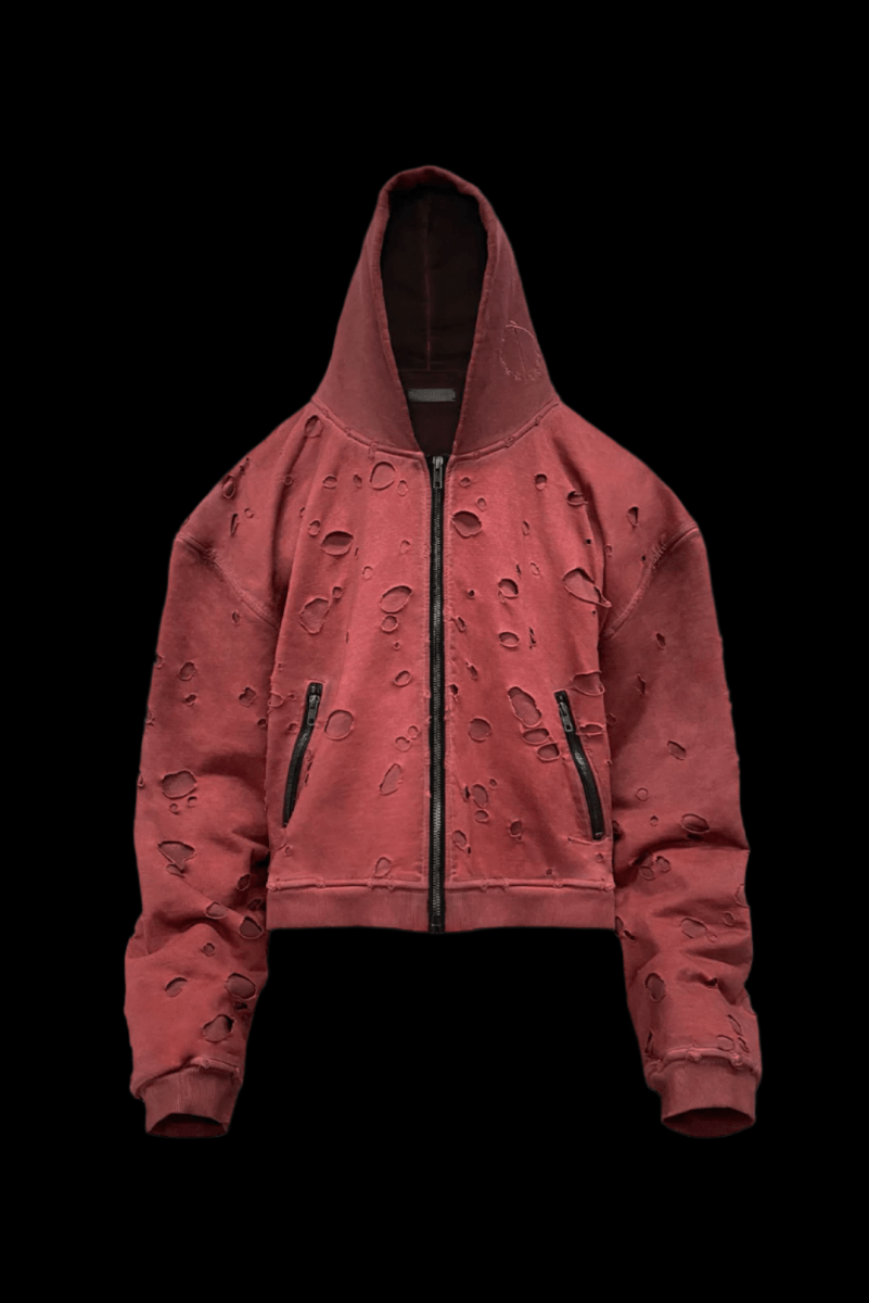 Bring heat to your fit with the Crimson Burnout Zip. This zip-up hoodie blends bold energy with distressed edge, perfect for turning chill days into standout moments.
