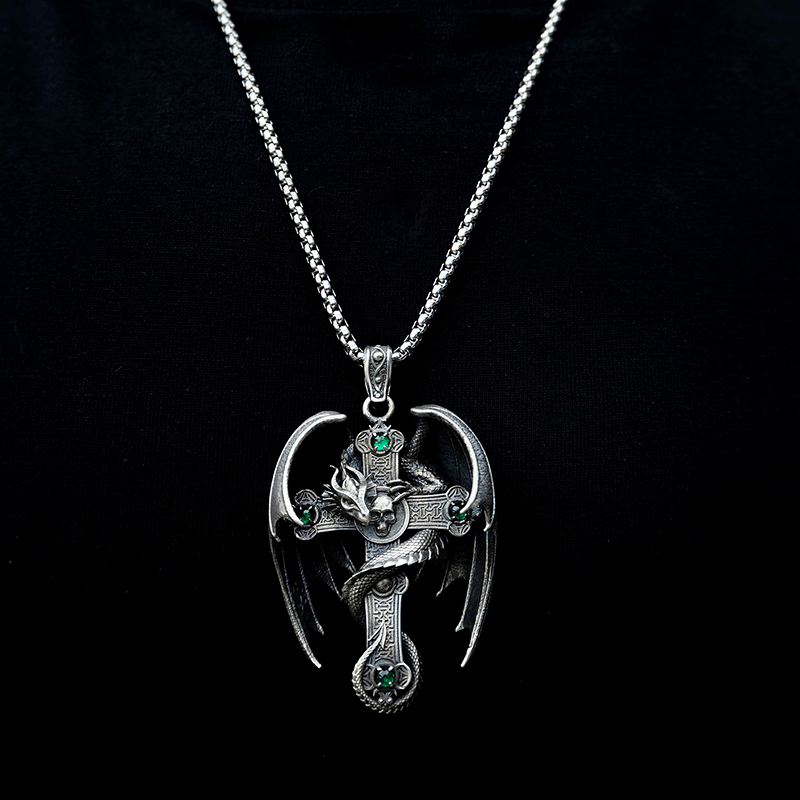 Material: 925 Sterling Silver, gemstone inlays, titanium steel chain (custom options available)