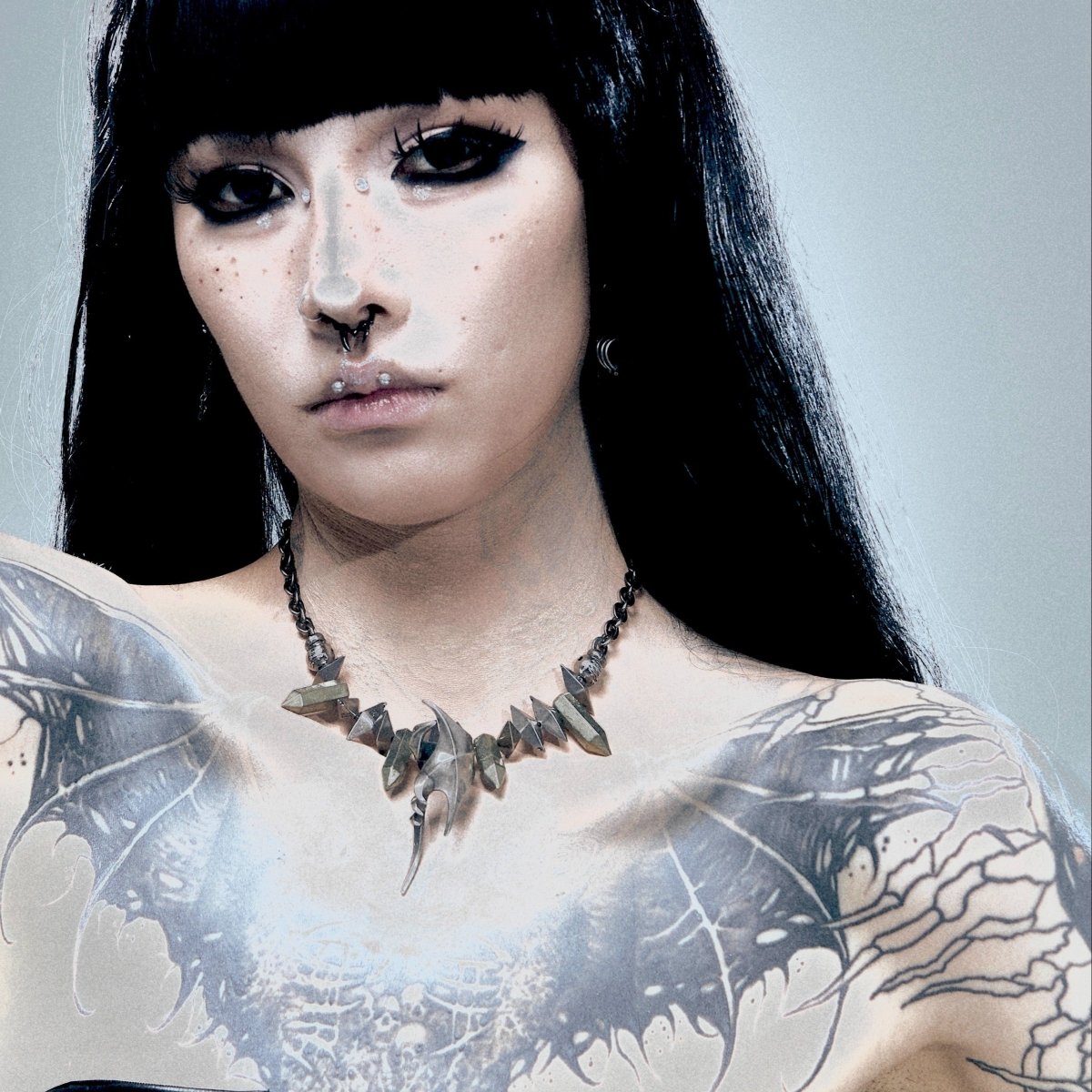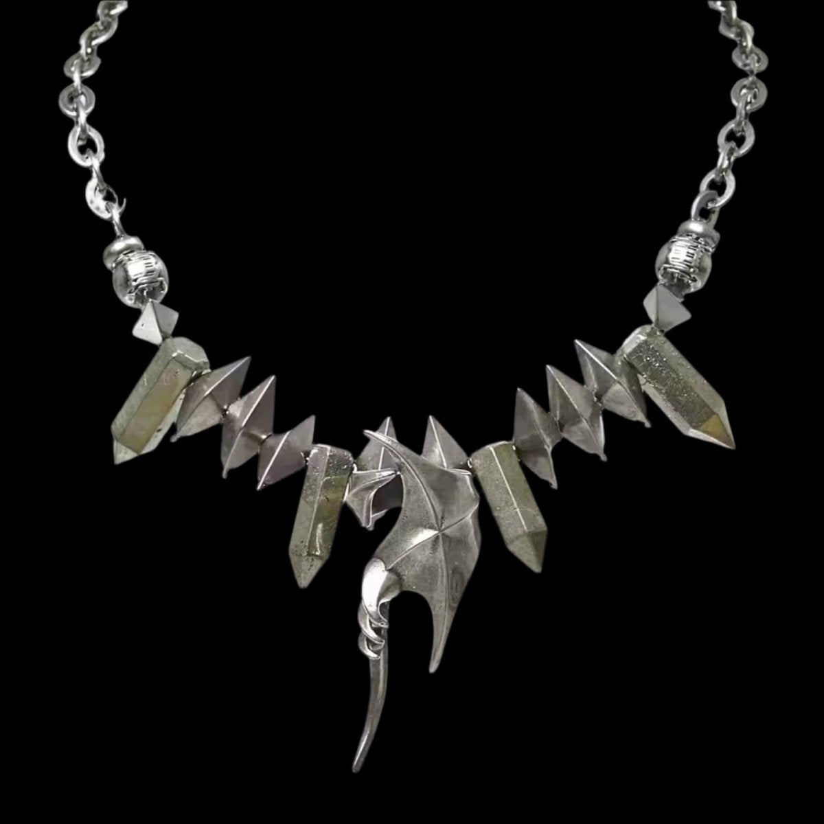 Style Details: Matte black pendant with fang-like points and sleek lines.