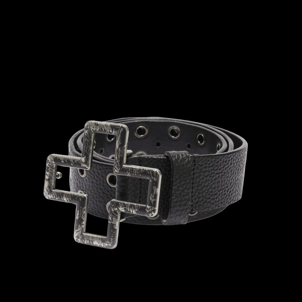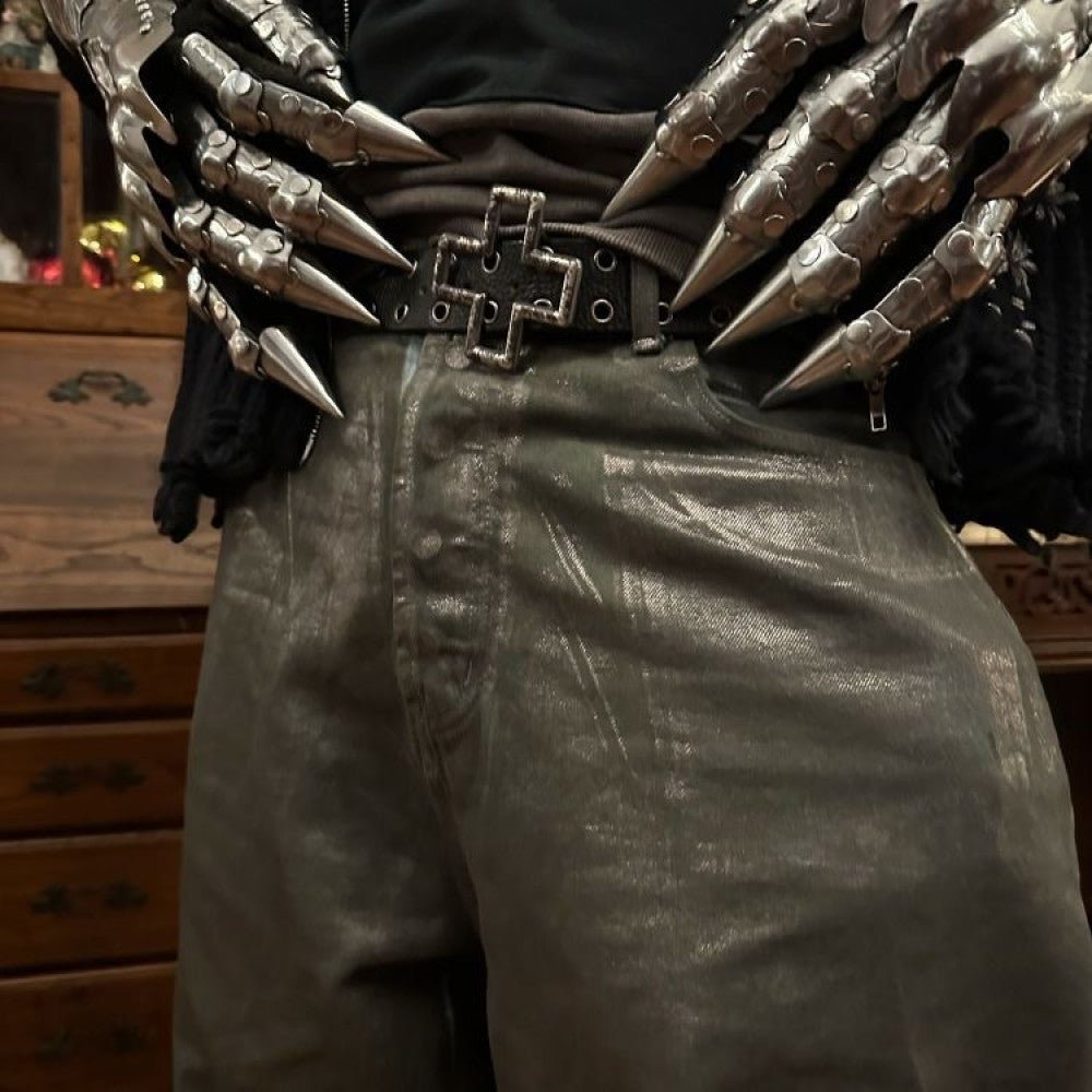 - Material: Split cowhide with patent leather treatment; titanium buckle