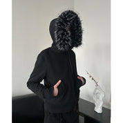 Side Zip Fur Hooded Jacket – Modern Edge Meets Effortless Cool