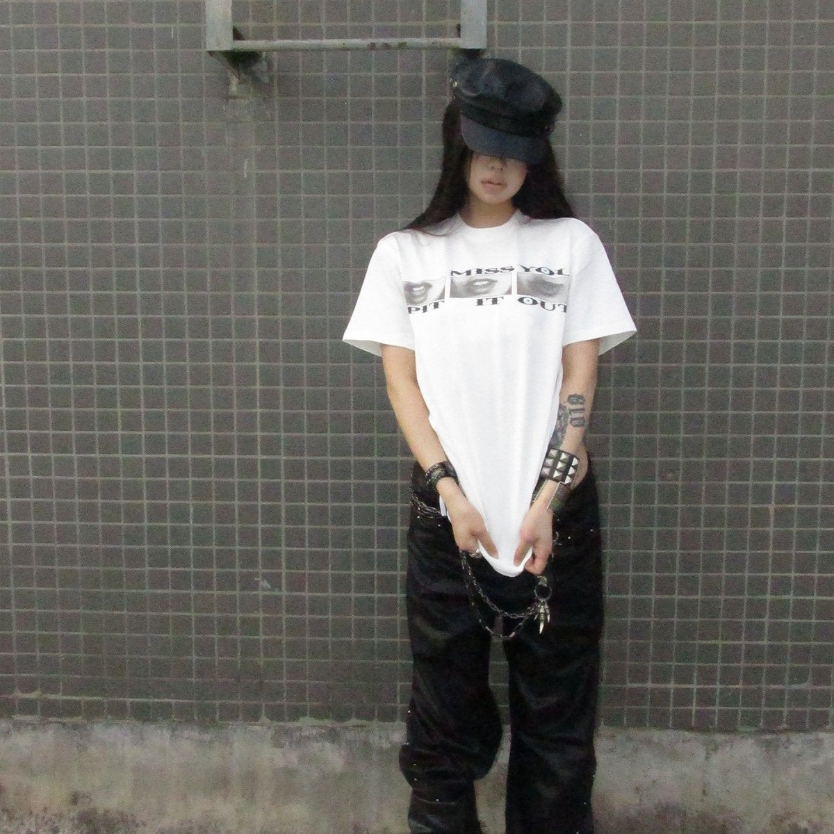 Design Vibe: Graphic print with vintage lips and bold text—raw and unapologetic.