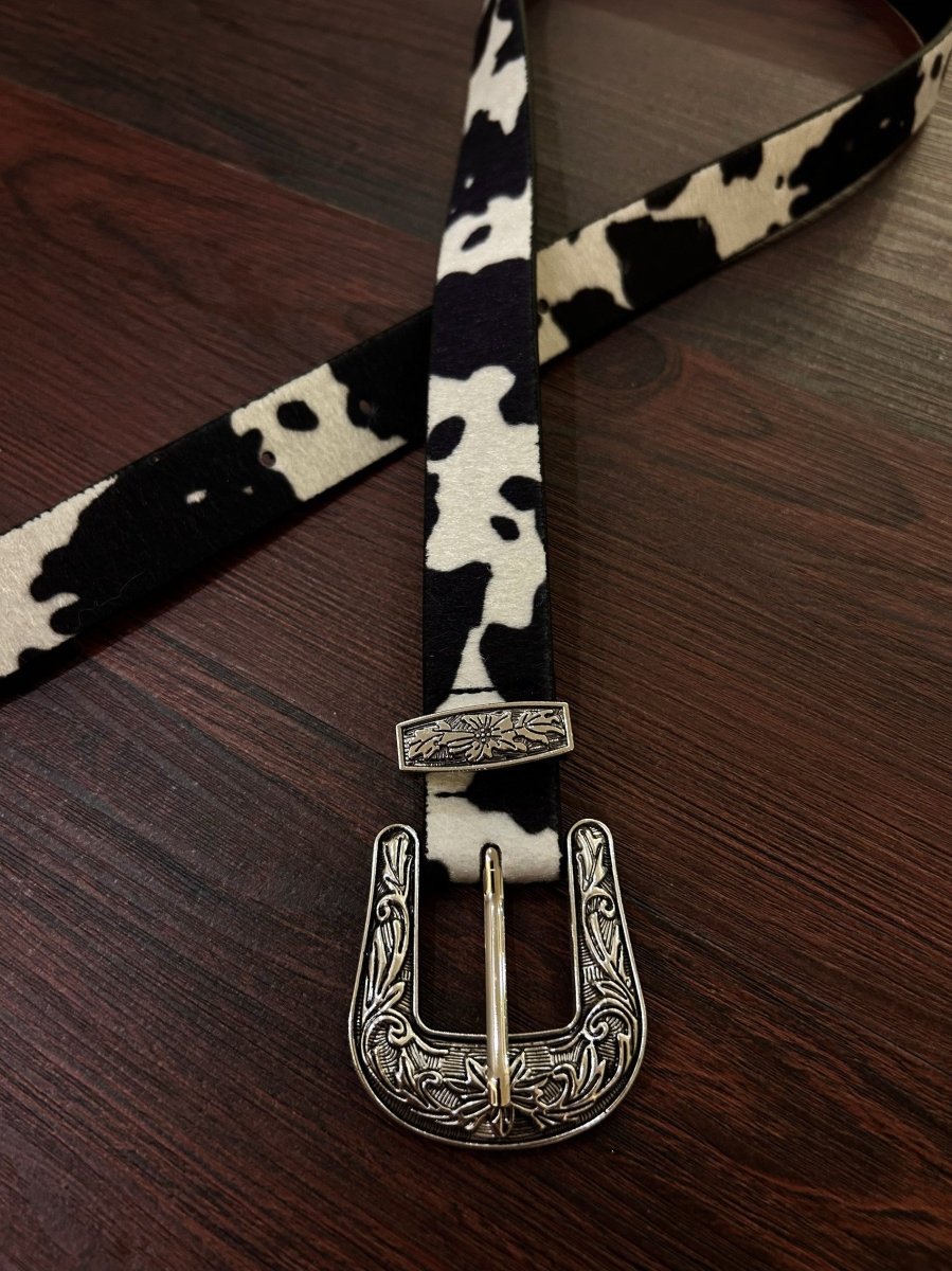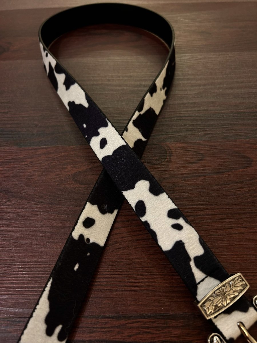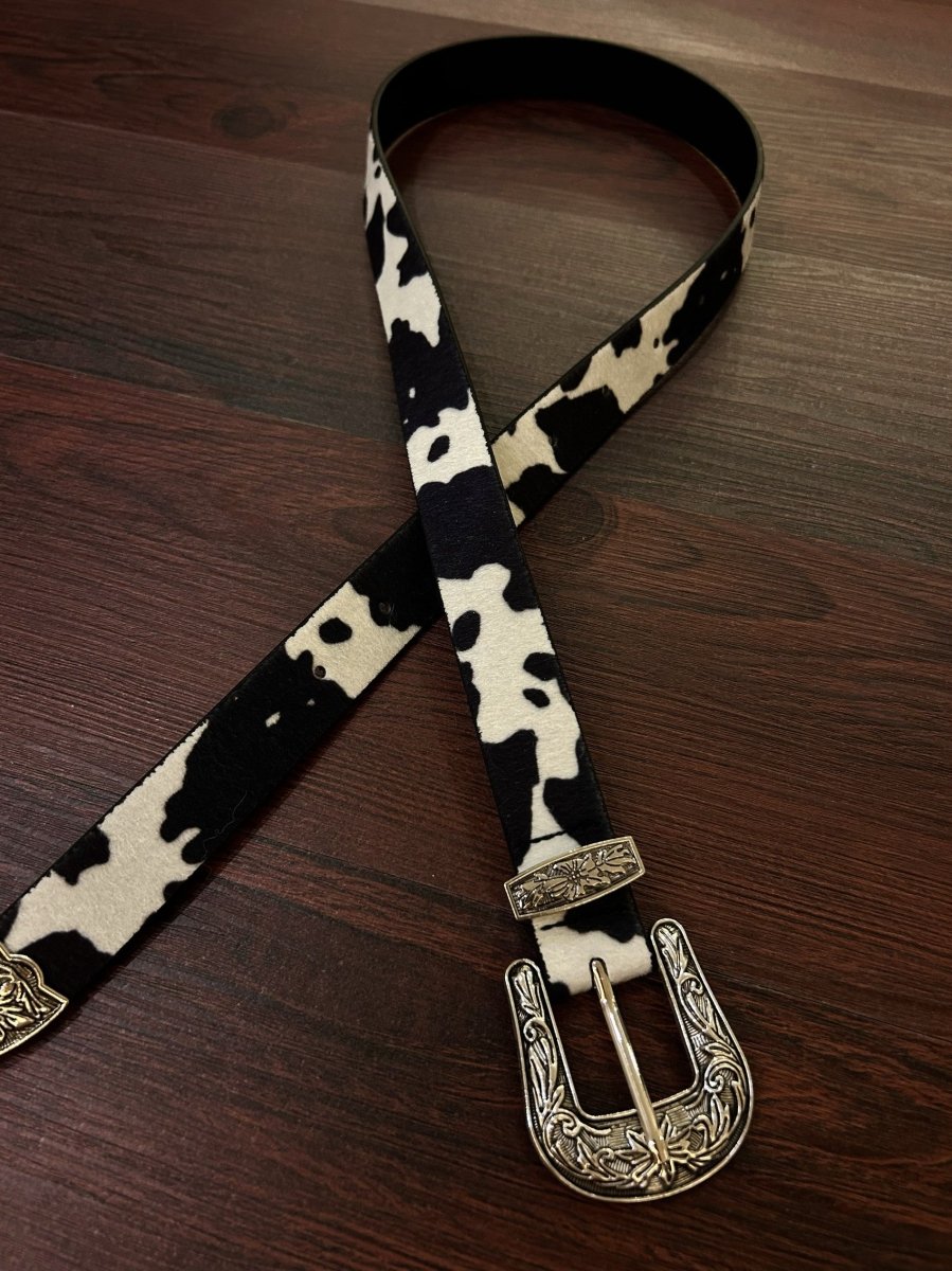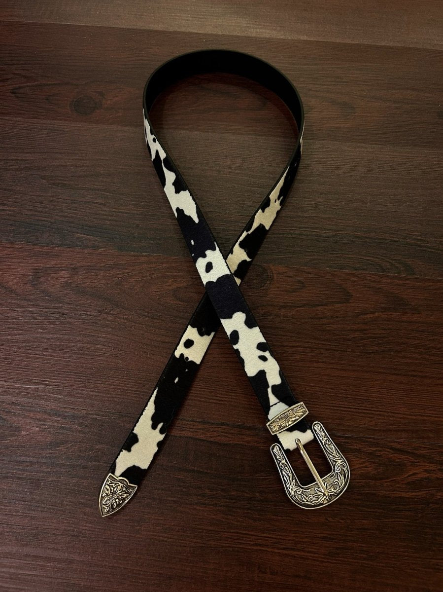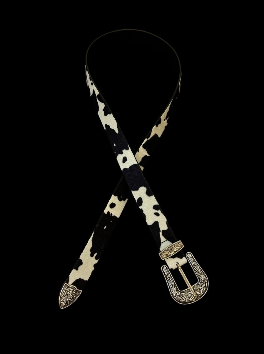 Bring bold western vibes to your fit with the Icons of Western Drip Cowprint Belt. With its cow print pattern and vintage-style buckle, this piece adds instant attitude to any outfit.