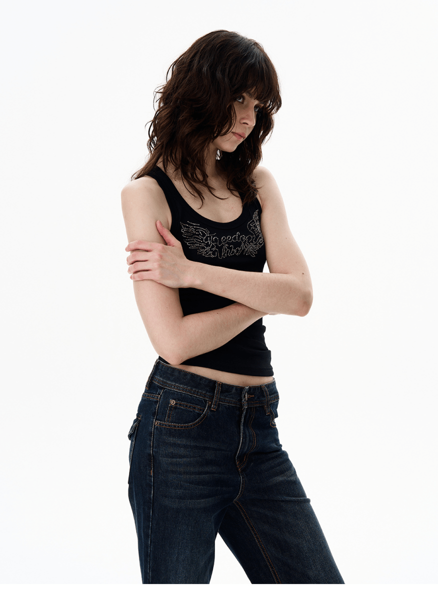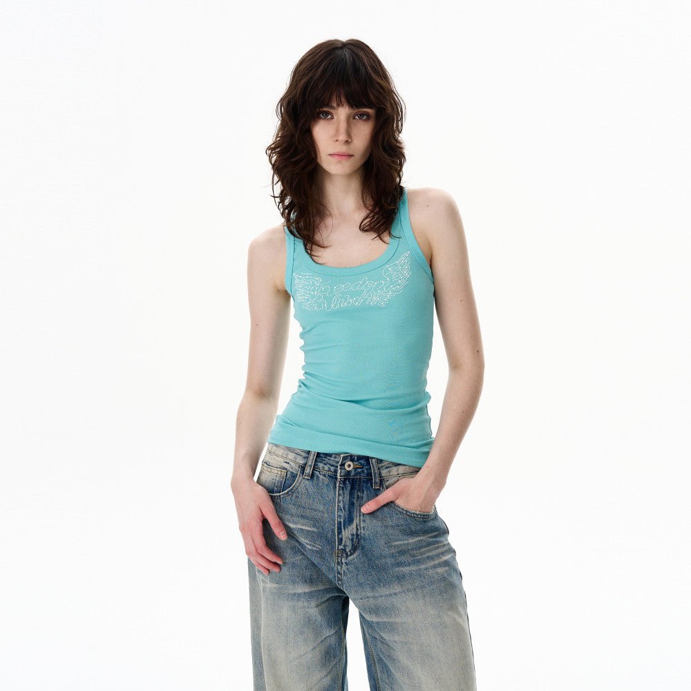 • Style: Original Design Slim-Fit Tank Top with Rhinestone Letter Accents