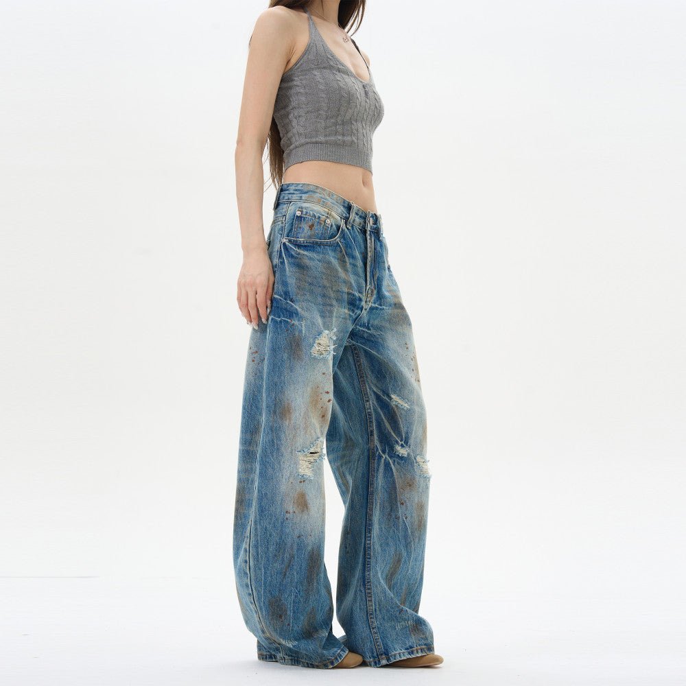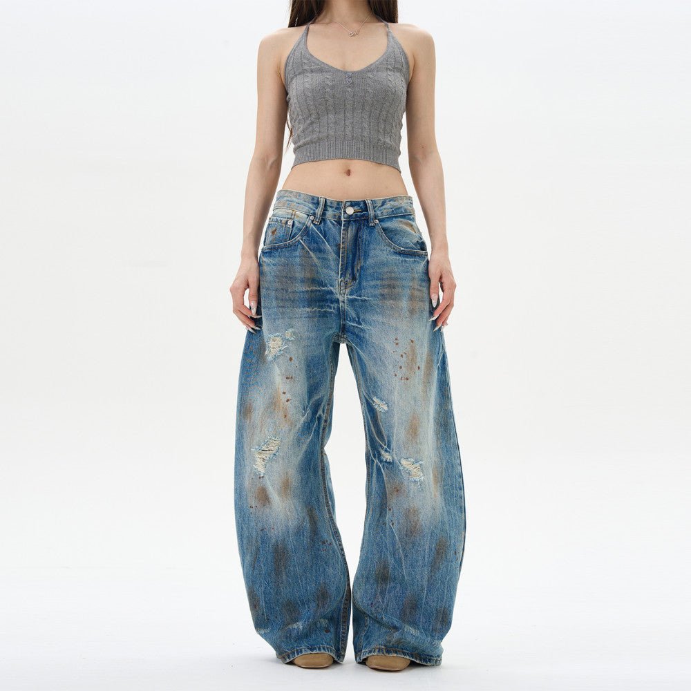 - Style: Trendy Loose-Fit Scimitar Pants with Distressed Graffiti Accents