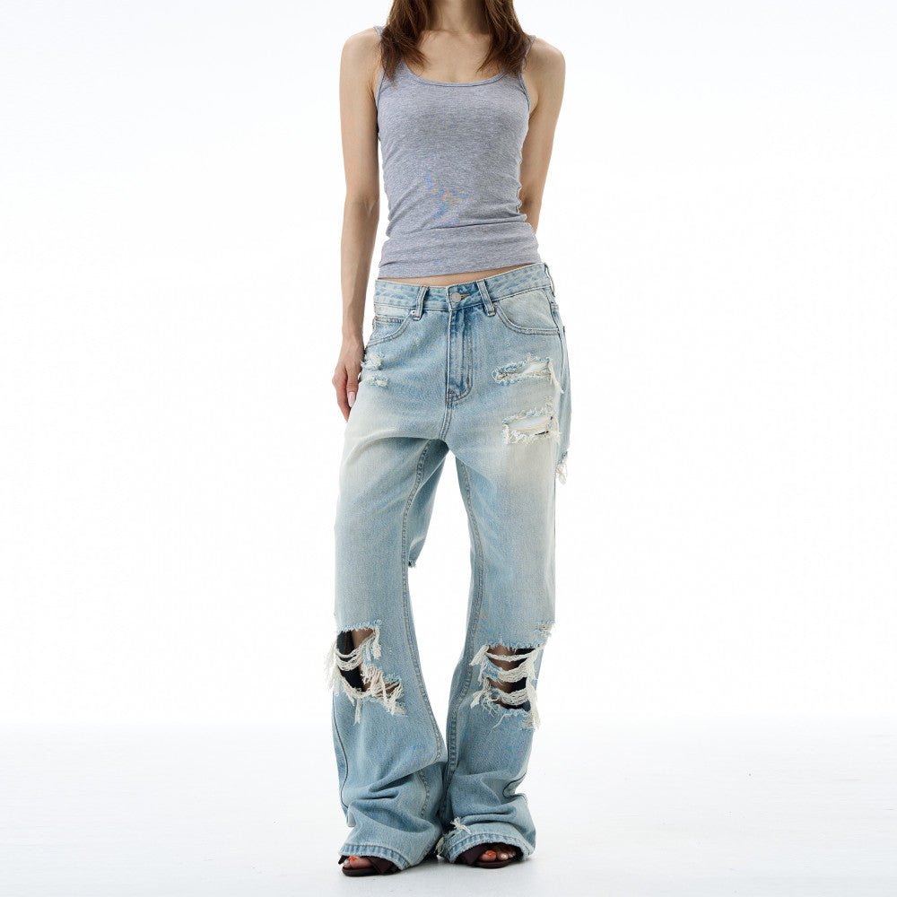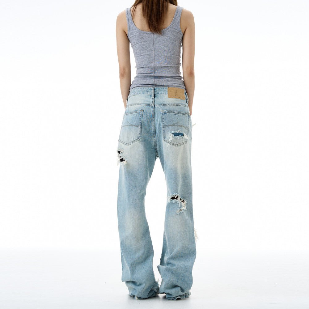 Style: American-Style Loose Straight-Leg Distressed Jeans