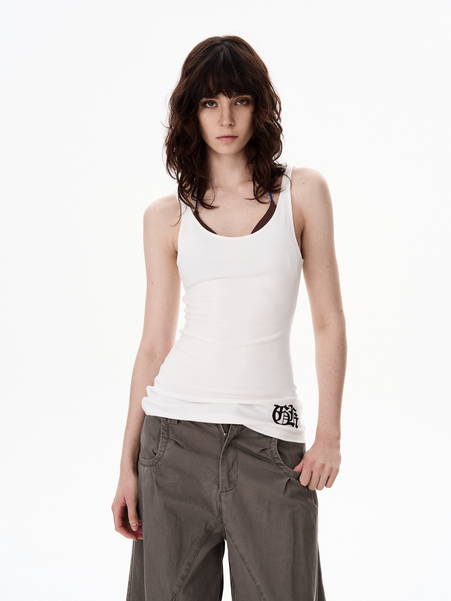 Style: Original Design Slim-Fit Tank Top with Letter Print