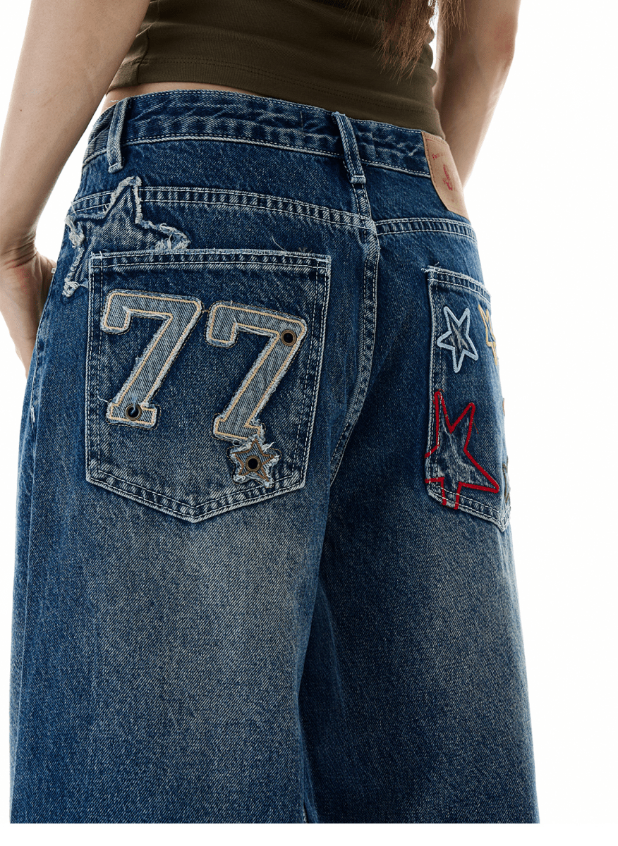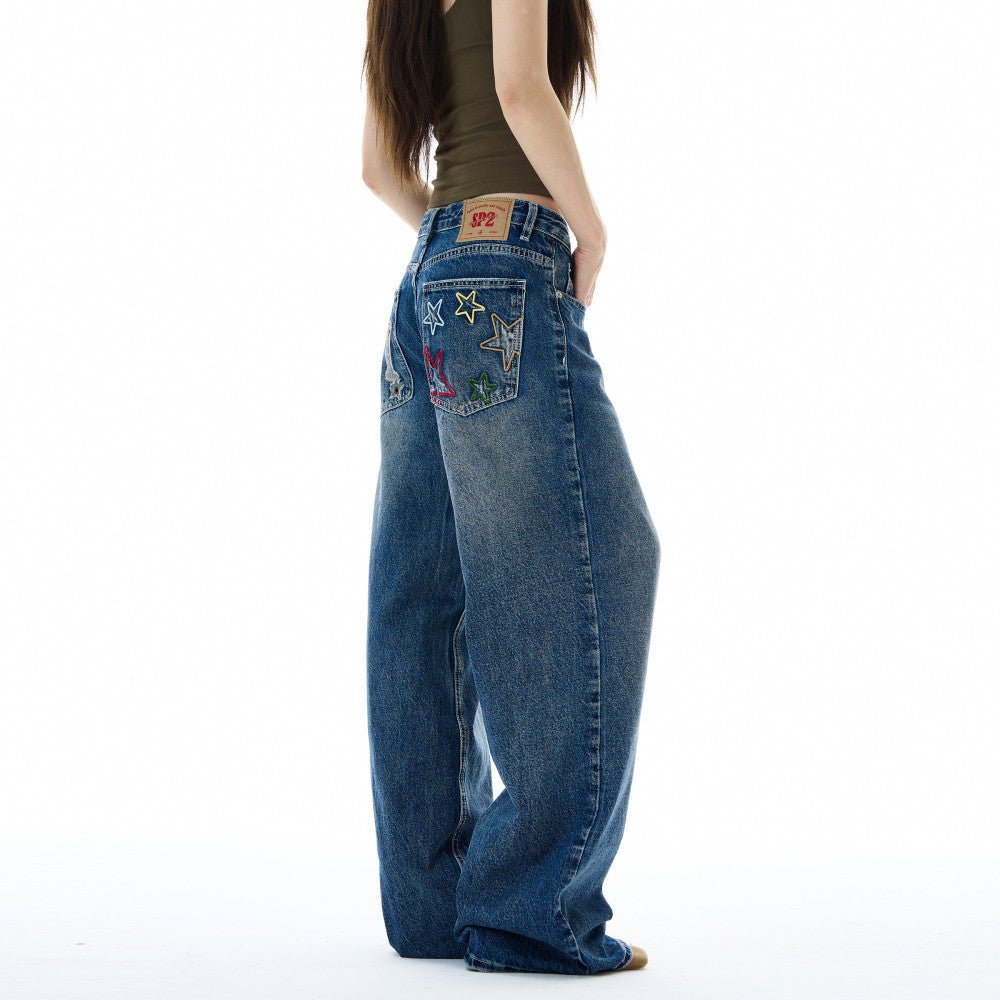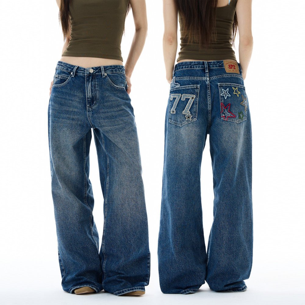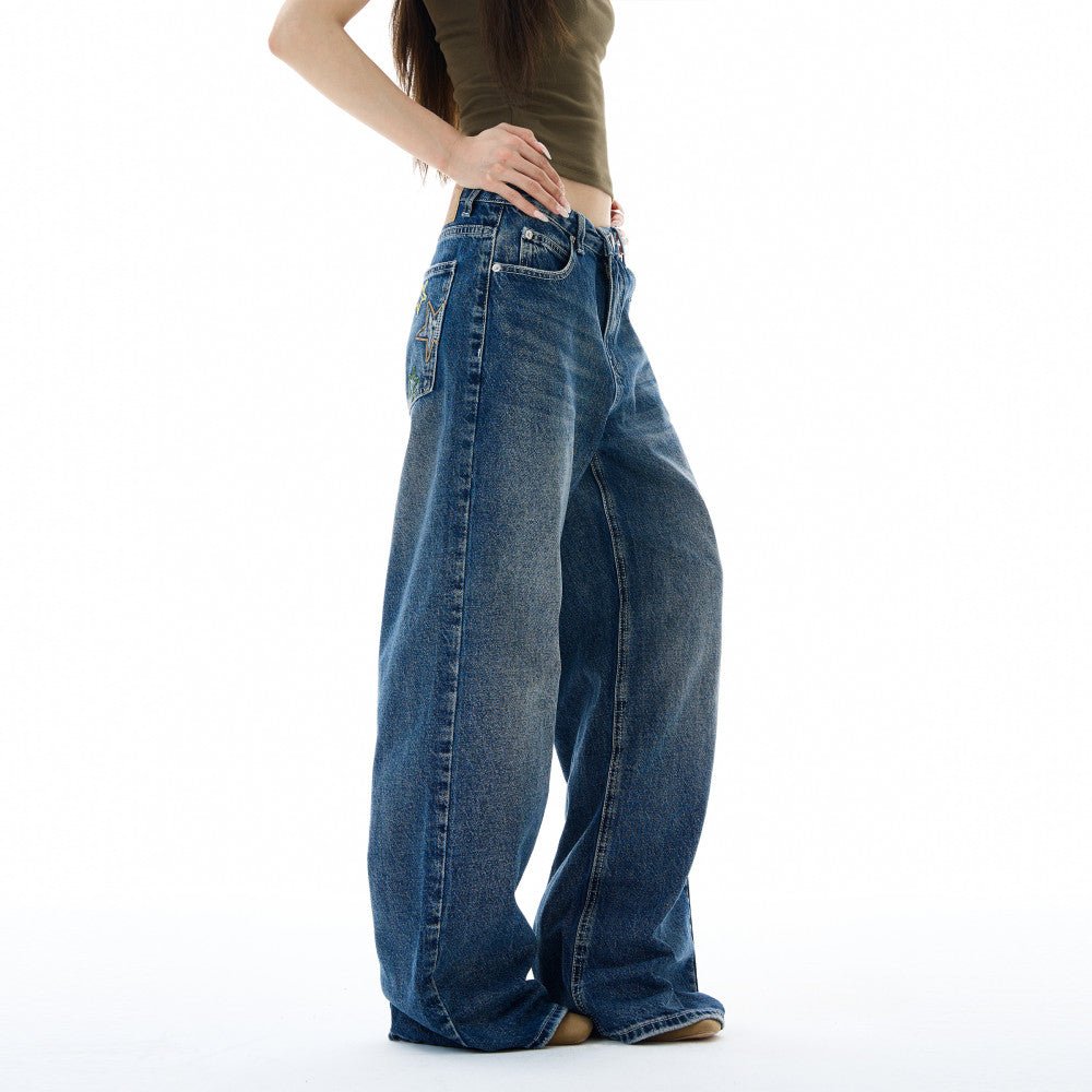 Style: Trendy Loose-Fit Straight-Leg Jeans with Embroidered Details
