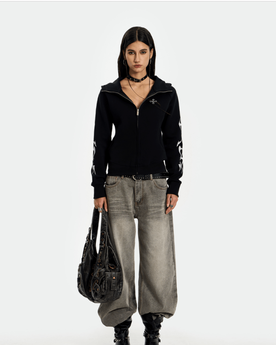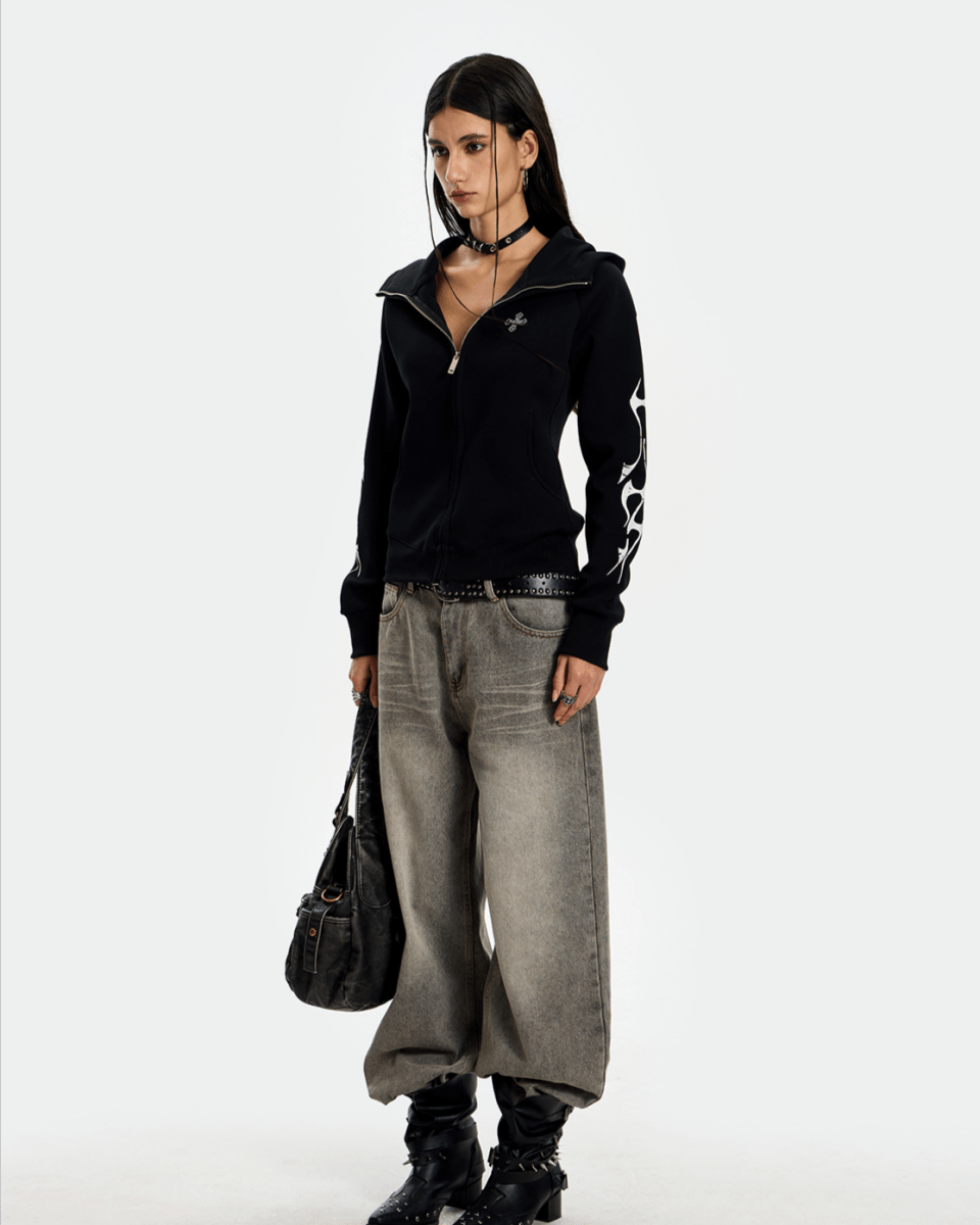 Style: Slim fit, hooded flame street-style cardigan with zipper closure. Ideal for spring and autumn wear.