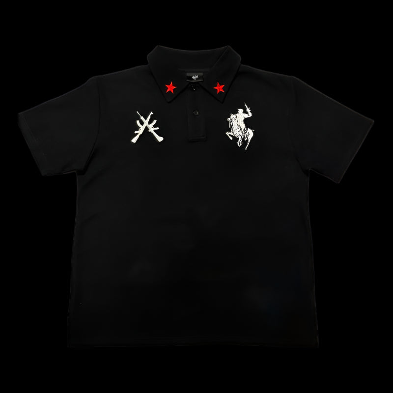 Embrace bold streetwear energy with a modern edge in our Warrior Elite Polo. Designed for those who move with confidence, this statement piece blends premium craftsmanship with military-inspired details, creating the perfect balance of comfort, durability, and a laid-back aesthetic. Featuring striking embroidered graphics, a structured collar, and bold red star accents, this polo is built for those who stand out.