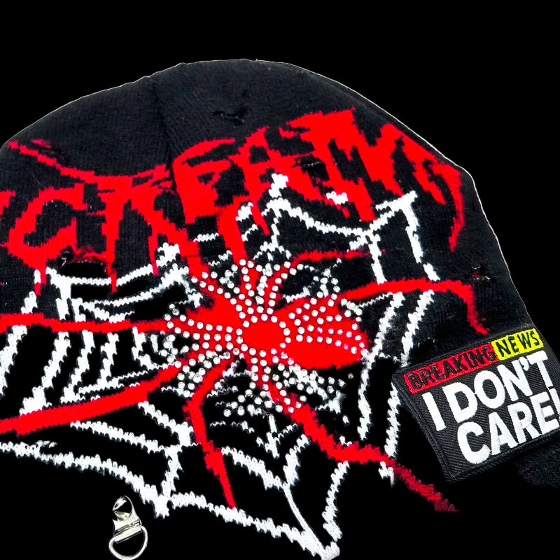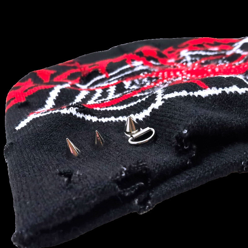 - Style: Street / rock-punk subculture with rhinestone and spider-rivet details