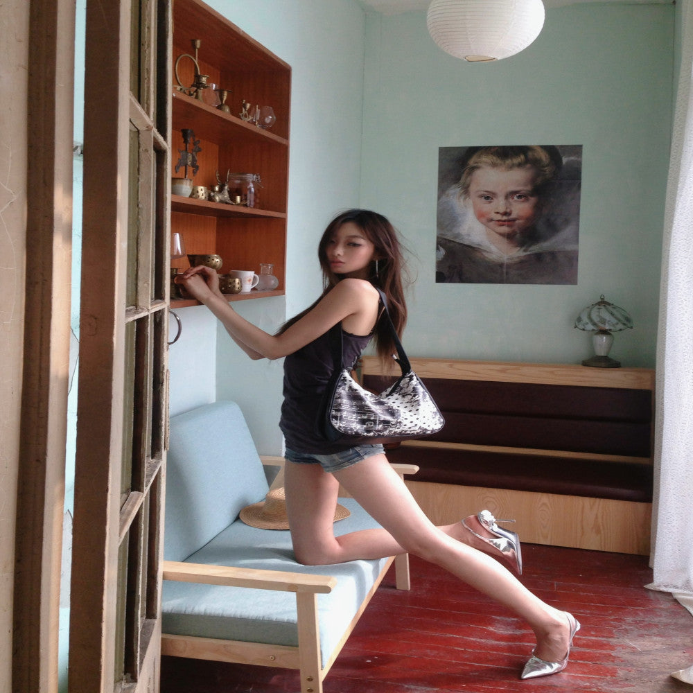 Color: Black & White (Note or Spot print; contrasting pattern with polka dots, notes, and abstract ink splatter)