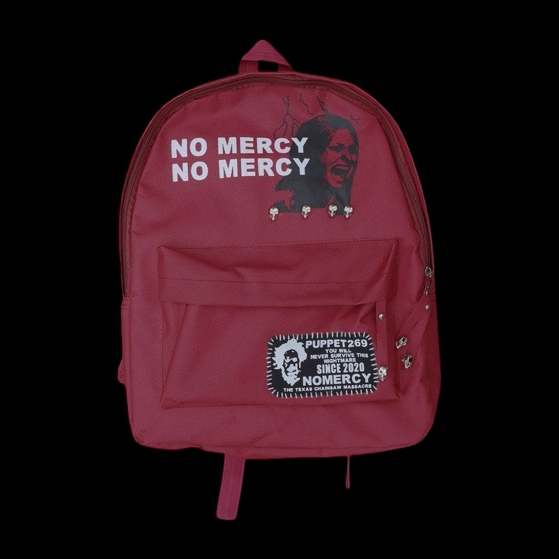 - Design: Horror graphic print with "NO MERCY" text & Puppet269 patch