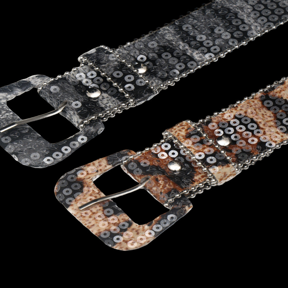 Material: PU (artificial leather) with sequins and metal bead detailing