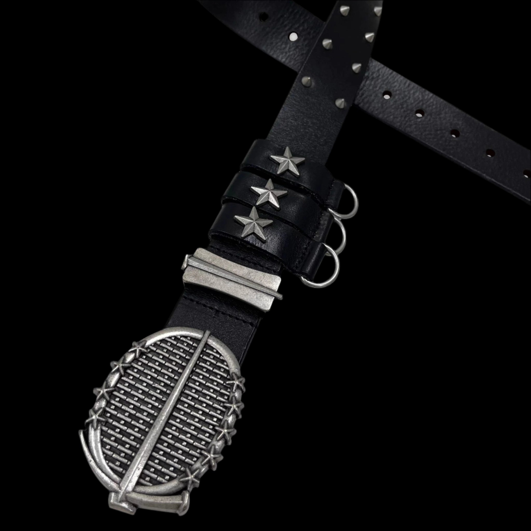 Style Vibe: Edgy star-shaped buckle with industrial flair