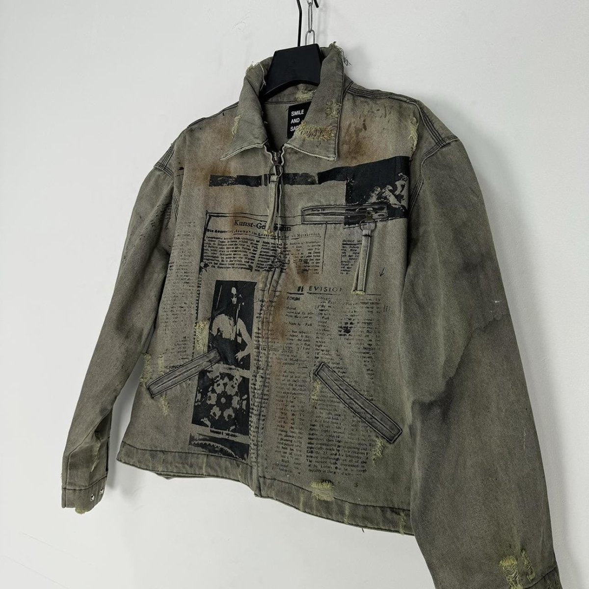 - Style Details: Distressed finish with newspaper print graphics for a retro, statement vibe.