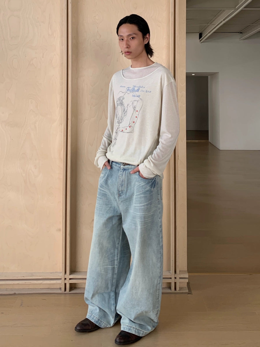 Design Elements: Printed graphics, fake two-piece style, distressed look