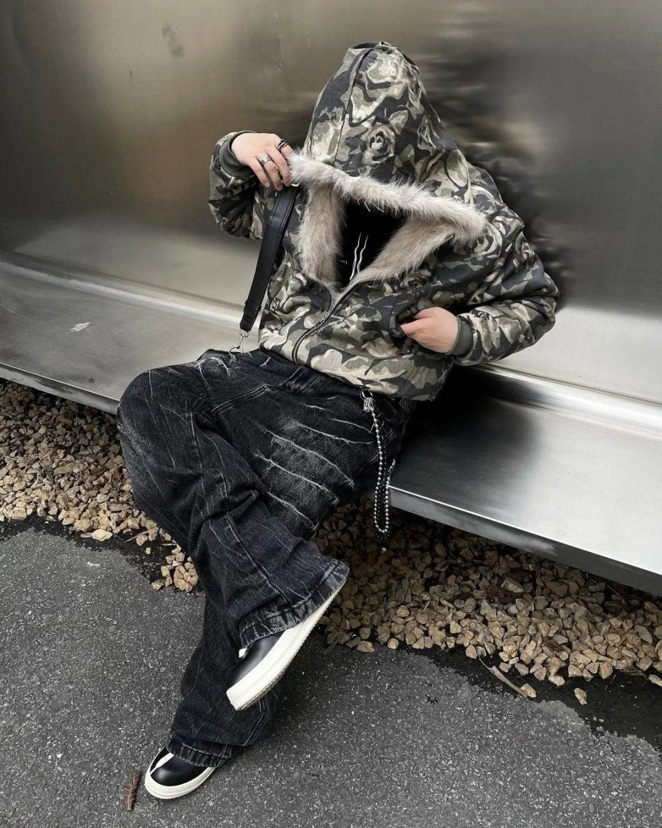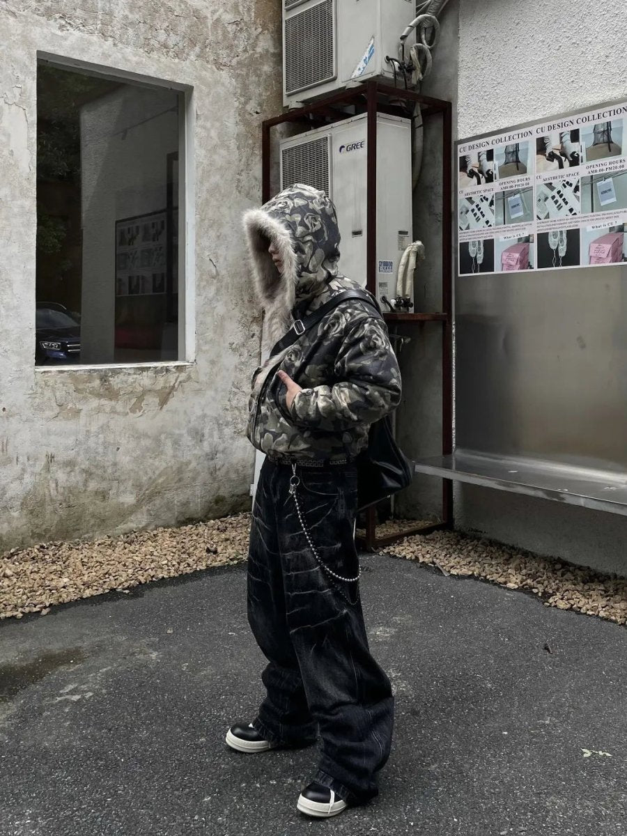 The Lighting Crease Washed Wide-Leg Jeans present an innovative twist on classic distressed denim. These jeans feature a unique design where traditional crease marks are reimagined as lightning bolt patterns, adding a striking and dynamic element to the garment. The wide-leg fit offers a contemporary and comfortable silhouette, making these jeans a stylish and relaxed choice for various occasions. Crafted from premium fabric, they promise durability and quality, ensuring that they not only look good but also withstand the test of time. These jeans are perfect for those who appreciate creative design in their denim wear and seek to combine classic styles with a touch of modern flair.