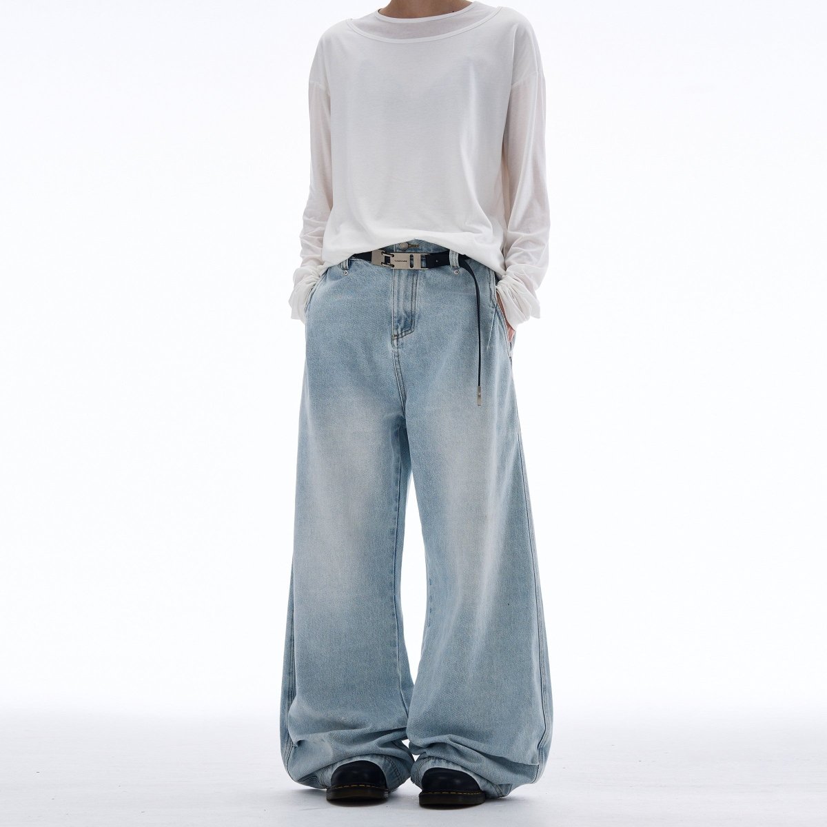 Washed Drape Scimitar Baggy Jeans
