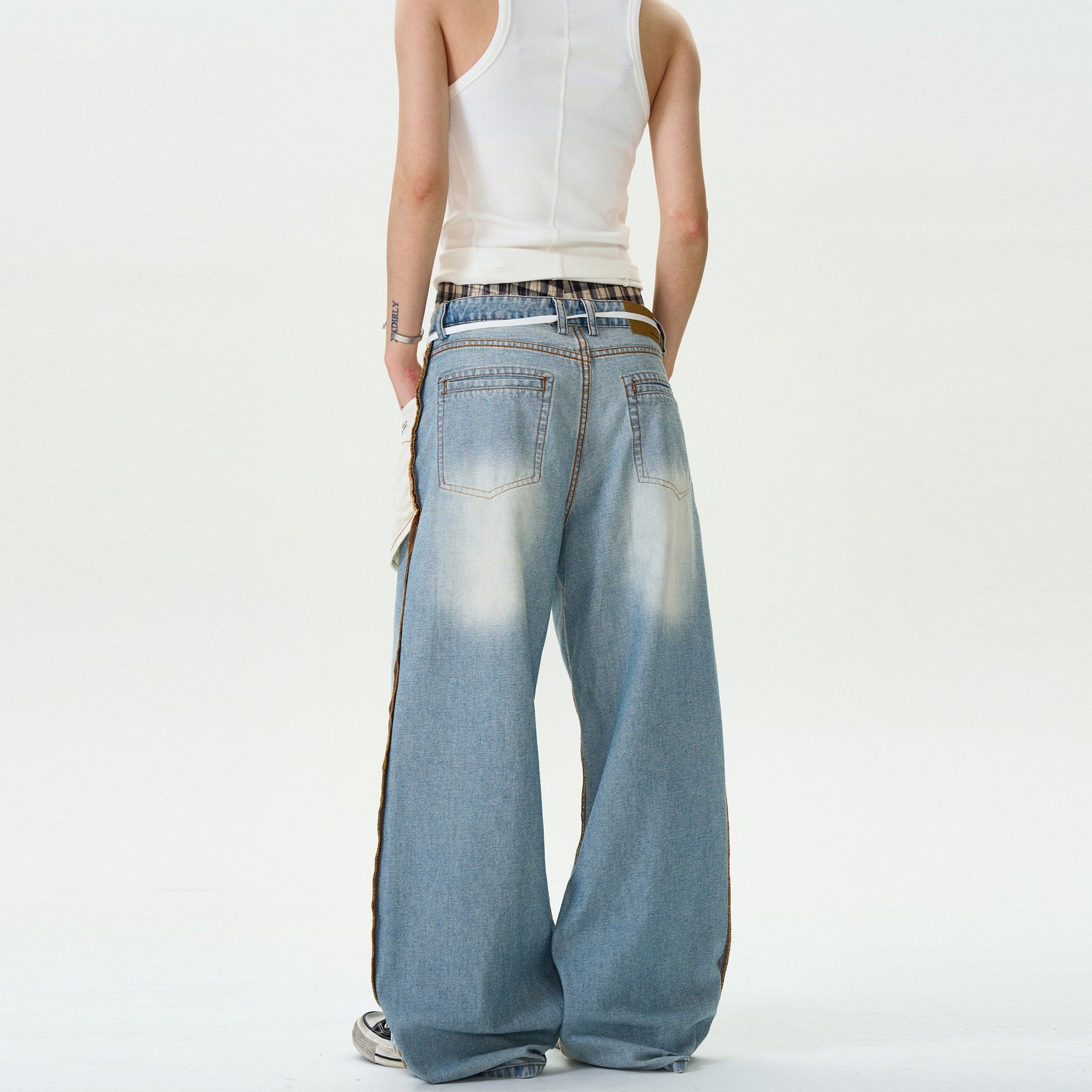 Get cool style with a twist in our Reverse Design Loose Jeans. These jeans flip the usual look with inside-out style details that make your outfit stand out. They’re made from comfy denim and have a loose fit that’s great for chilling or going out.