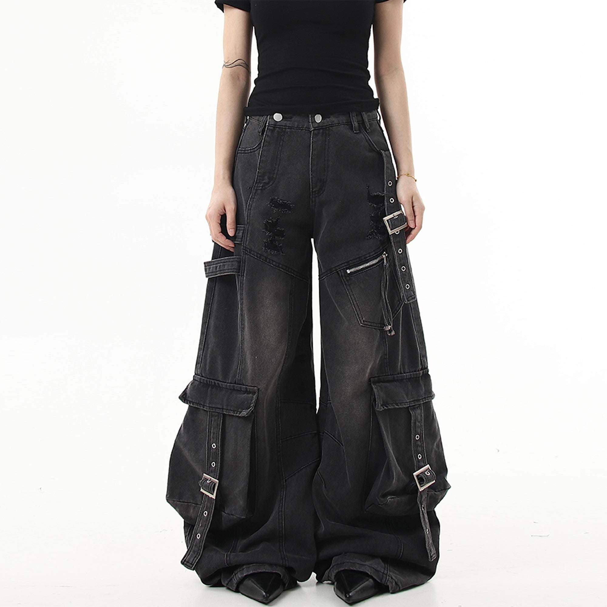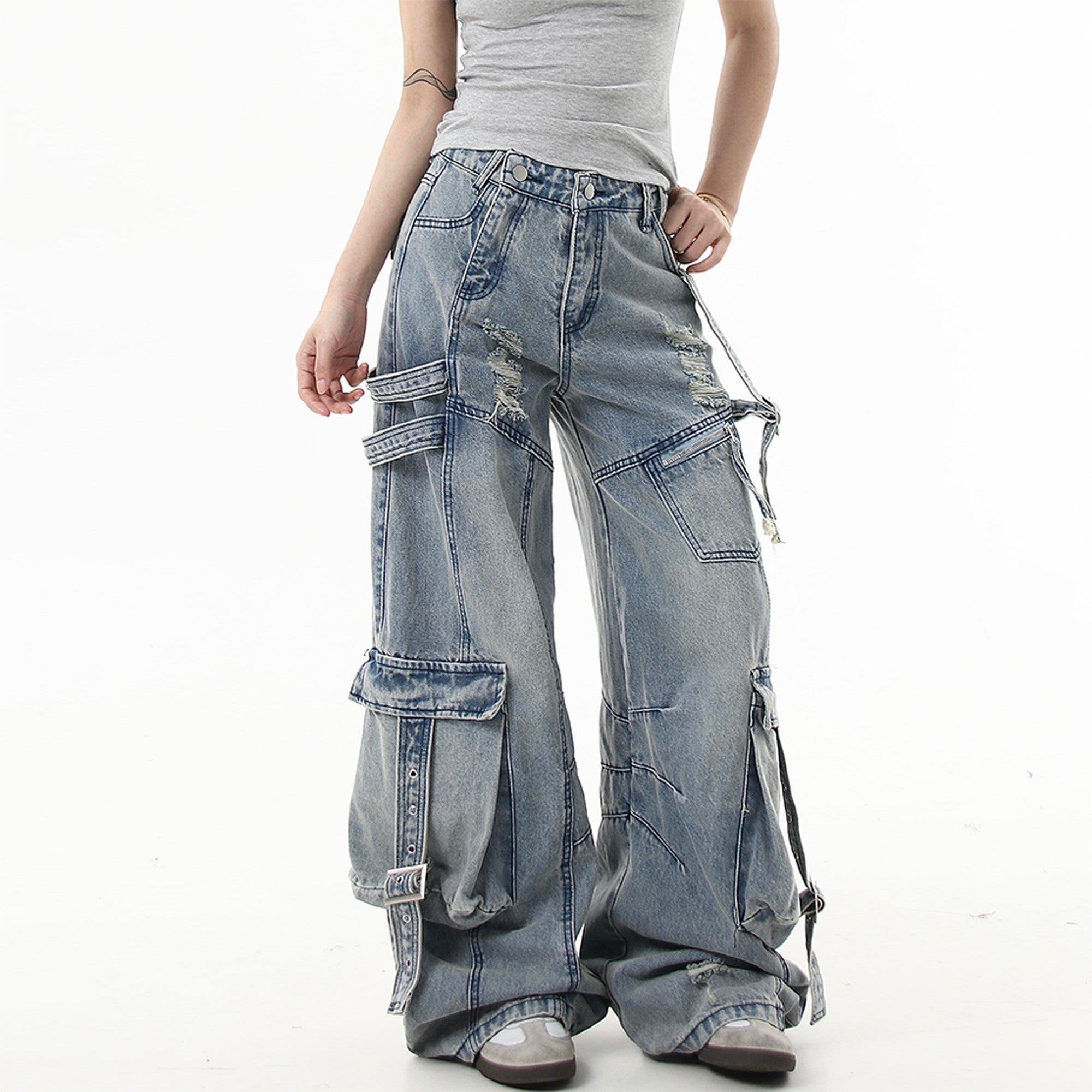 - Style Details: Ripped denim with statement ribbon accents for a standout look.