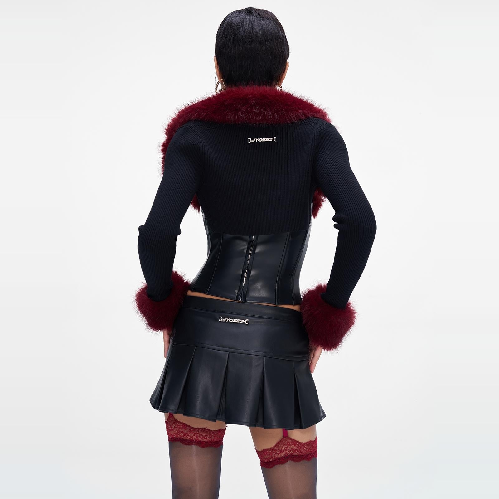 - Style Details: Sumptuous fur-textured sweater paired with a structured waistcoat and a chic skirt for a perfectly layered silhouette.