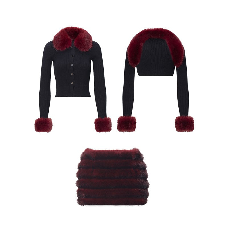 Redefine cozy sophistication with the Frosted Luxe Set, a three-piece ensemble that effortlessly blends texture, warmth, and high-fashion vibes. Featuring a plush fur long-sleeve sweater, a sleek waistcoat, and a figure-flattering skirt, this set is designed for the modern trendsetter who values comfort and bold elegance. Perfect for creating standout looks that transition seamlessly from day to night.