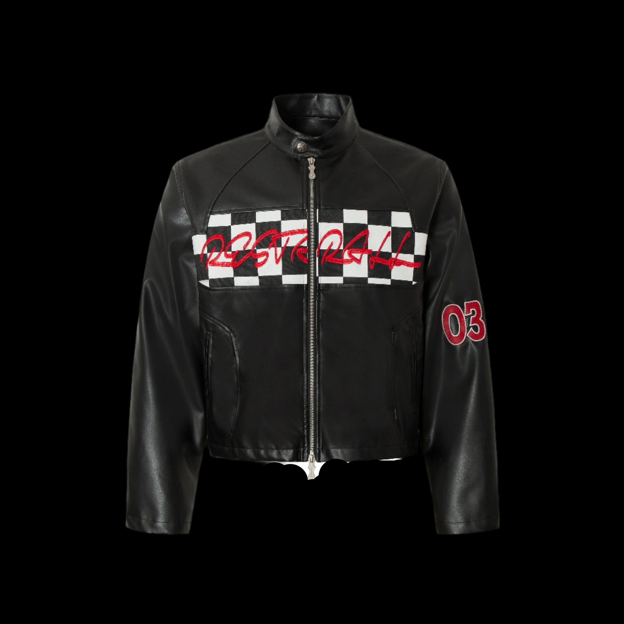 Step up your style game with the Grid Rush Racer Jacket. With its bold checkered design and sleek leather look, this jacket makes sure you stand out anywhere you go.
