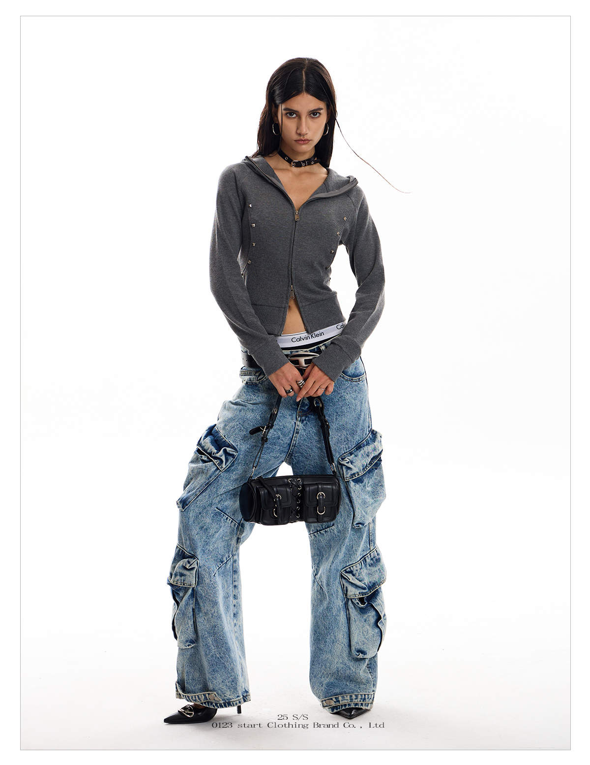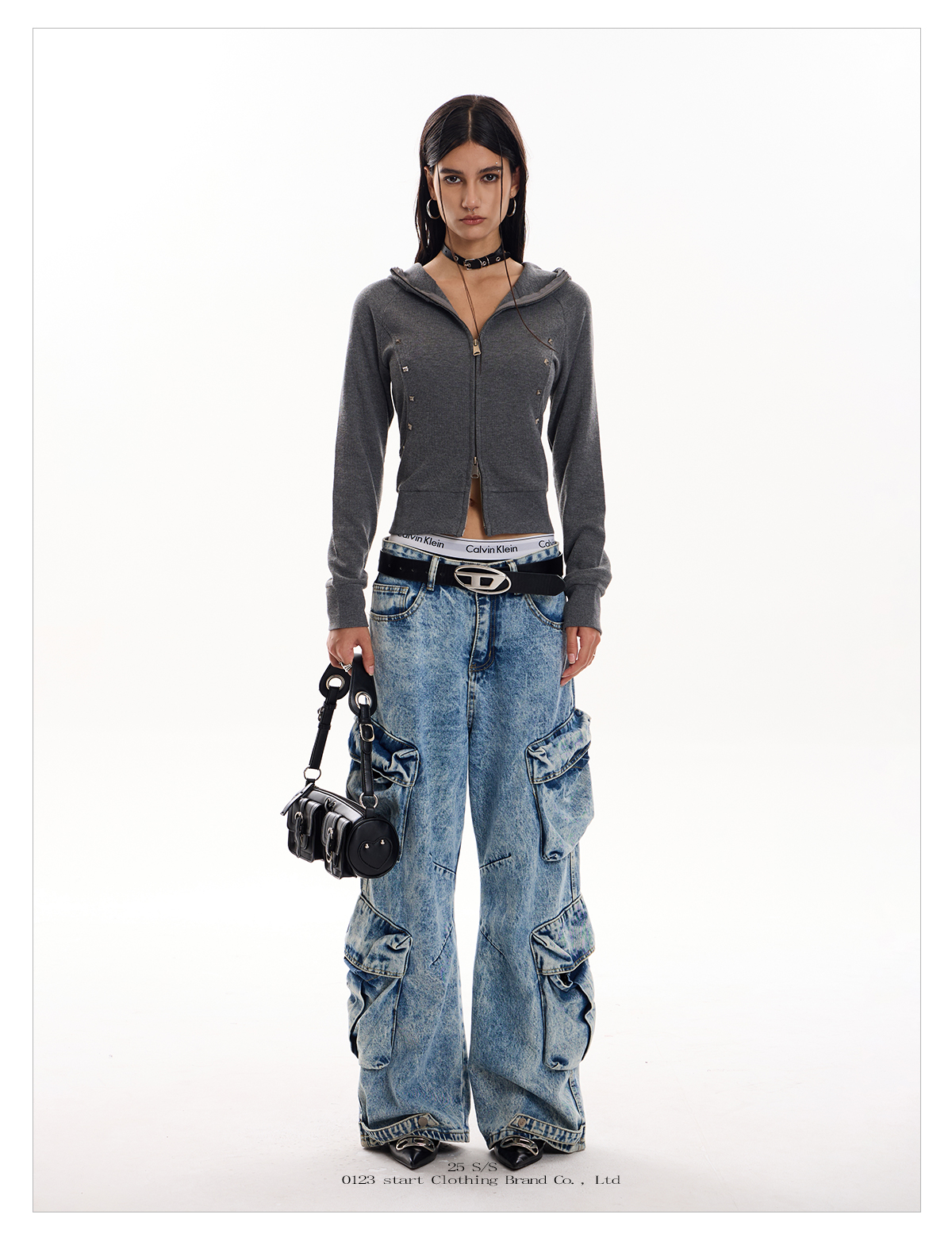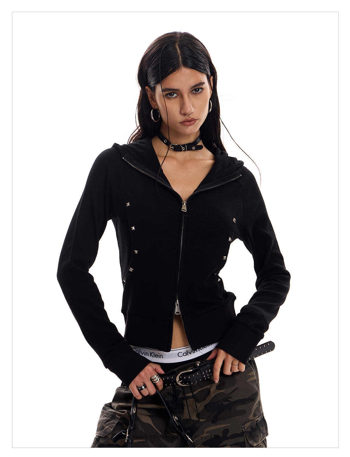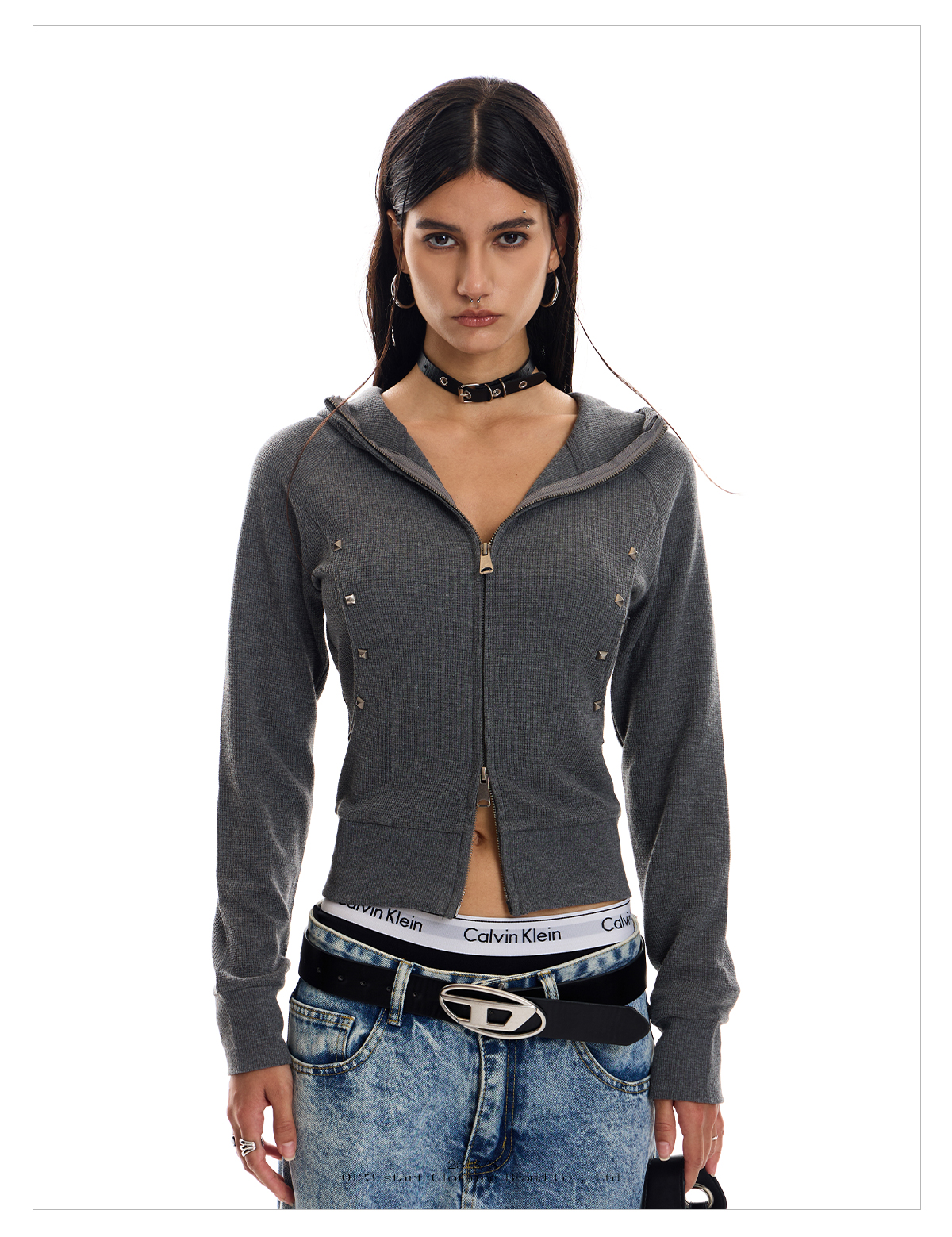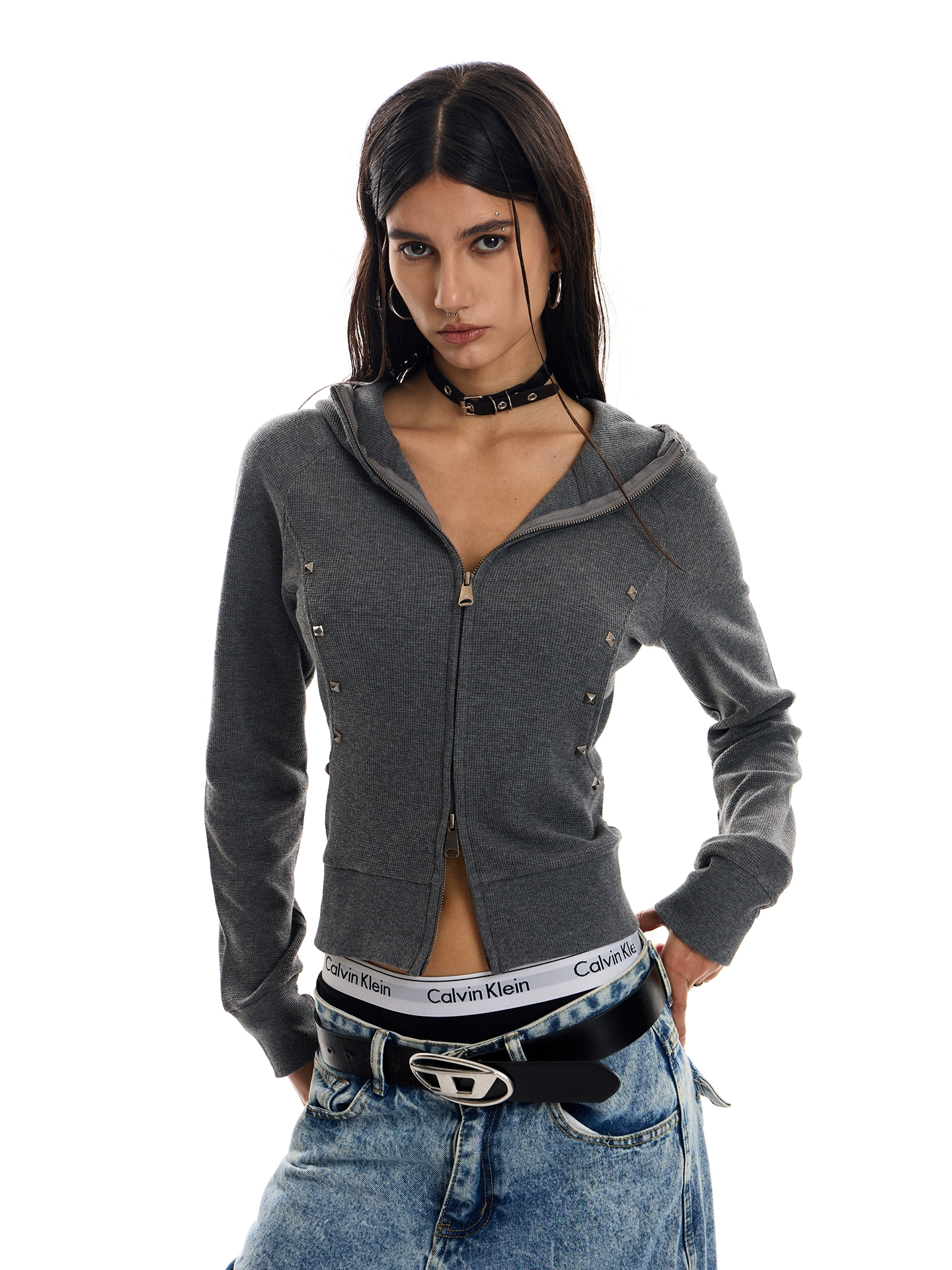 - Style: Streetwear Cardigan with Rivet Detailing, Slim Fit, Short Length, Zipper Closure