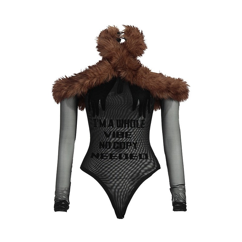 Unleash Bold Elegance with the Velvet Fur Mesh Jumpsuit